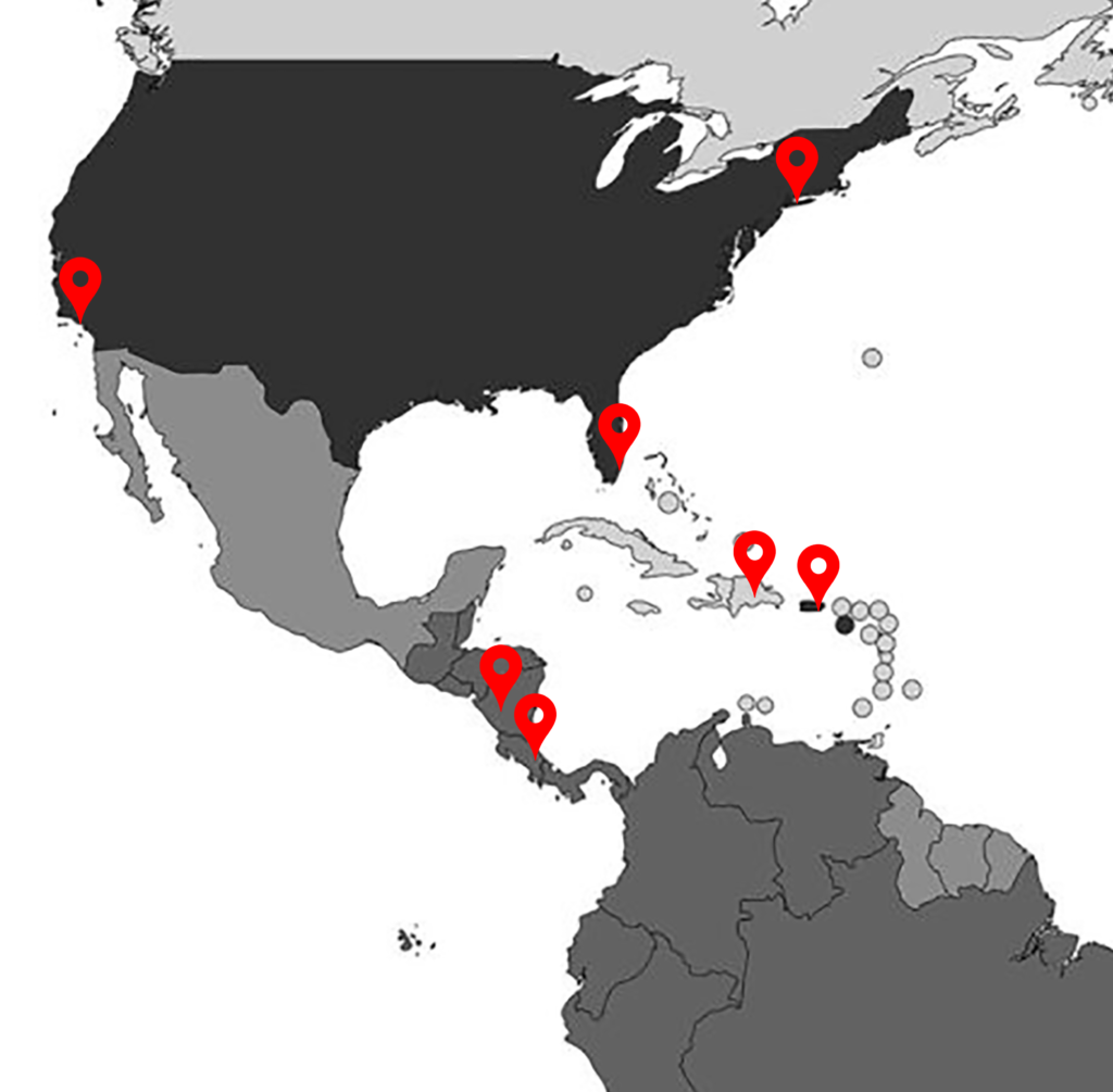 Los Angeles, Miami, New York, Dominican Republic, Central America, Caribbean